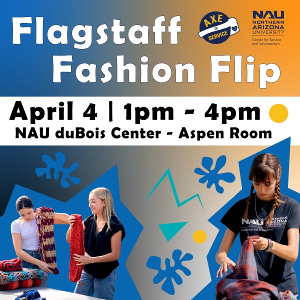Join NAU CSV and Axe of Service for an Earth Day clothing swap full of high fashion and high altitude service! Want to shake up your wardrobe for the spring season? Come by the Flagstaff Fashion Flip at the Dubois Center and swap out your old clothing for some hip new drip! For every article you bring, you will receive a ticket to exchange it for something else! Save yourself a trip to the thrift store, and update your wardrobe in a fun and ecofriendly way with others from the NAU and Flagstaff community!